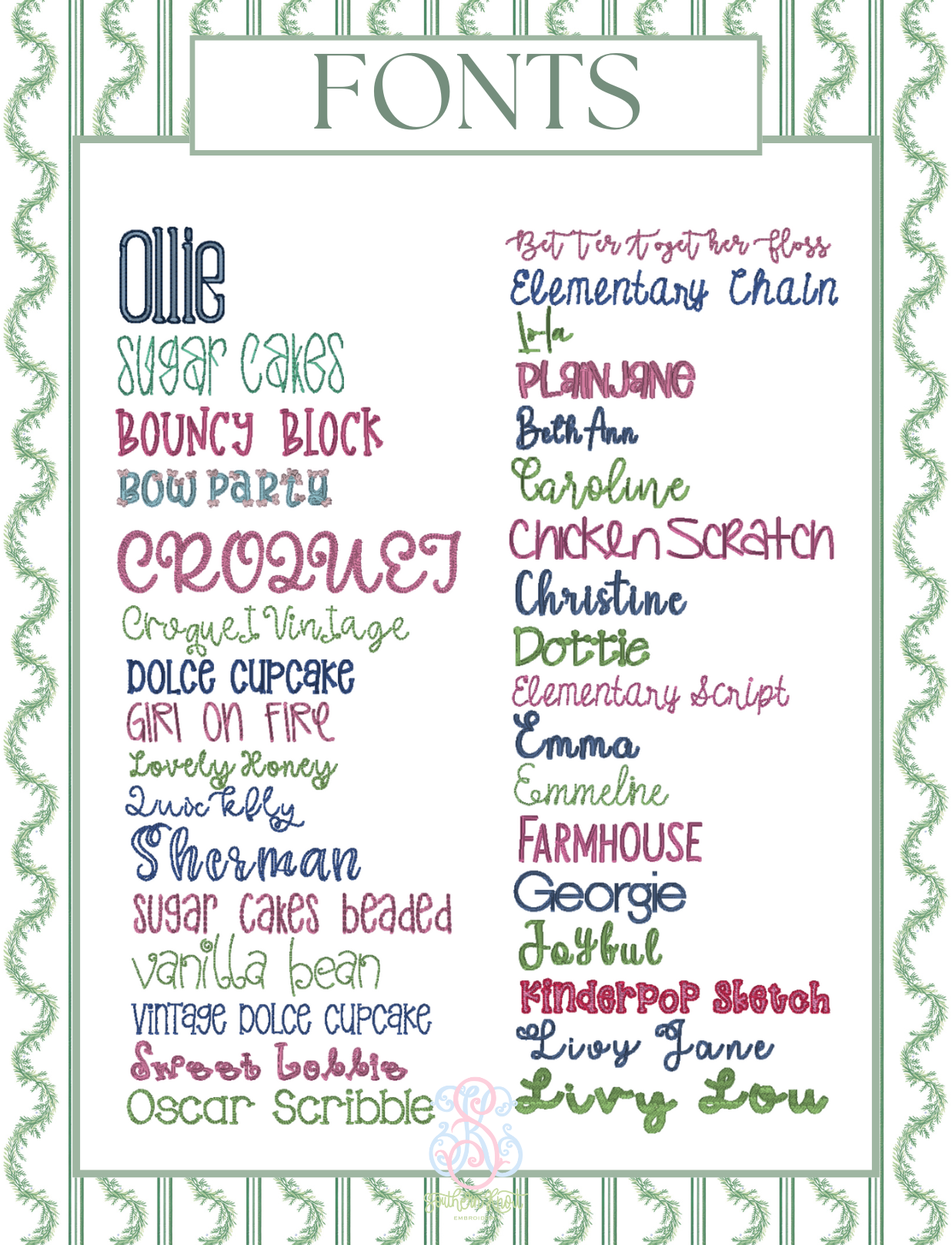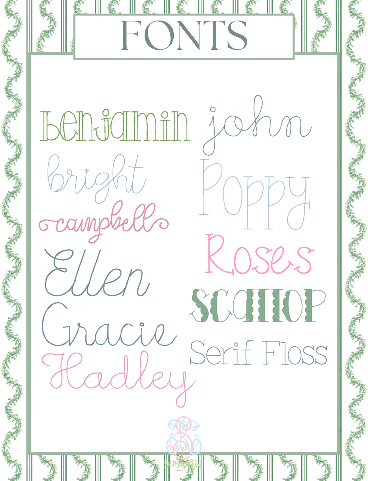 Explore our curated selection of fonts, thread colors, and fabrics—each hand-picked to create timeless, personalized pieces with signature Southern Knot charm.
